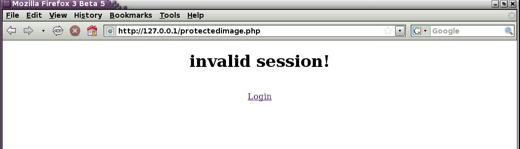 The protected image that is displayed after proper login is shown in Figure 6, while the same page (http://127.0.0.1/protectedimage.php) loaded without a valid session is shown in Figure 7. Look at the URL on the address bar of the browser in both the figures—the same URL displays the image when the session is available and denies access when the session is not available.