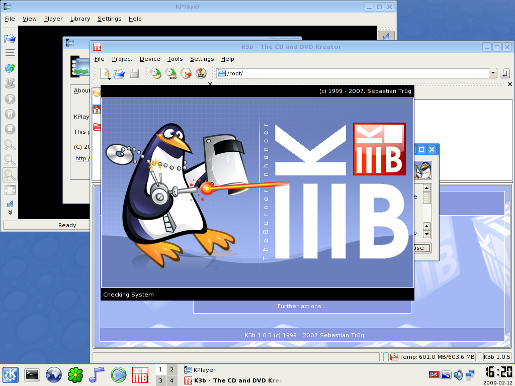 As with Slax, MP3s play out of the box. WMAs don’t, but that’s the same as with JuK. The media player KPlayer uses MPlayer as its backend and can play anything that is thrown at it.