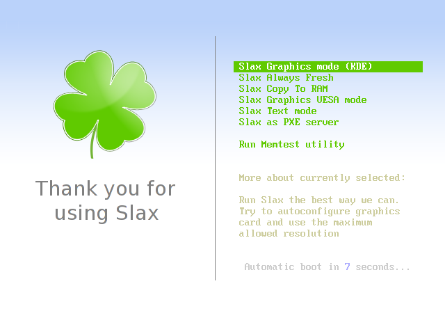 I still detest what they did to the bootsplash. Slax 5 used to have a Slax flower above the scrolling boot log, but it has been done away with in version 6. I wonder why.