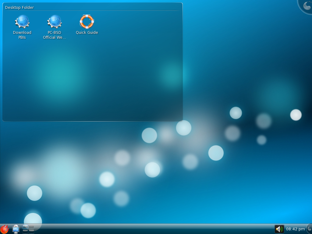 After the actual installation is complete, the first boot needs some attention. After X starts up, a pop-up comes along, telling me to supply some information about my graphics card. I have an NVIDIA GeForce 7100/nForce 630i, and I don’t like what I see. The string “vesa” is staring at me when I look at the field specifying the video driver. Not good. So I open up the drop down menu, and see three NVIDIA drivers—version 69, for legacy cards; version 173, the stable drivers; and version 180, the current drivers. I select version 180, and X re-starts. WhoHoo! I’m finally staring at KDE 4.2.2. At this moment on, there really is no difference between PC-BSD and Kubuntu. Well, save one: you don’t have Apt here.