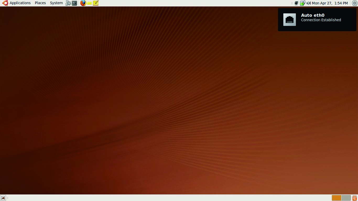 After I had logged in to the installed system, I connected to the Internet to refresh the repository cache, and here I found the new notification system working as advertised in the technical overview on the Ubuntu website. Canonical has come up with a new system to notify users on matters like network connection status changes, print job status changes, new e-mails, etc. The default balloon tips no longer appear. They have been replaced by black rectangles appearing near the top right corner of the screen.