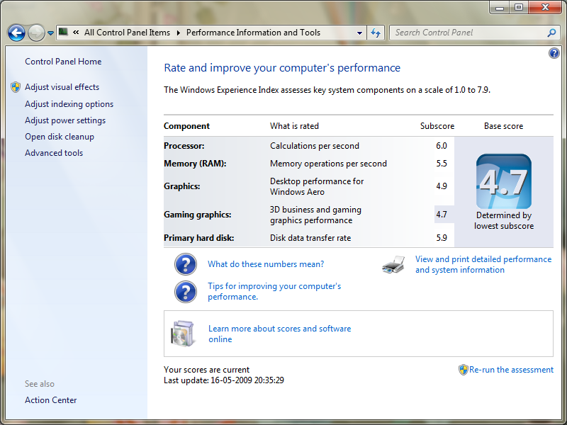 The first boot on Windows 7 was a big surprise, seeing a full resolution of 1024×768 at 32-bit colour, which is the native resolution of our 15 inch or 38.1 cm flat panel. Even Vista gave only 800×600 at 24-bit colour. Closer inspection revealed that the nVidia GeForce 9400GT was working with full DirectX 11 support. It turns out that Microsoft ships Windows 7 with modified nVidia Forceware drivers that enable support for DirectX11 (the Forceware drivers on nVidia’s website are still for DirectX10, but this is slated to change by the time you read this). Our Realtek AC’97 HD Audio worked as well, so did our Conexant CX11252 voice and fax modem (I still have a dial-up connection as a back-up, and I don’t use fax, though I can). Windows also recognised our keyboard’s multimedia hotkey caps (in previous versions I had to download and install IntelliType, a Microsoft add-on software; looks like Microsoft hates its own hardware), though only partially. The volume keys, playback control, mail and Web keys work; while the zoom slider, My Favourites, My Documents, My Pictures, My Music and Messenger keys don’t.