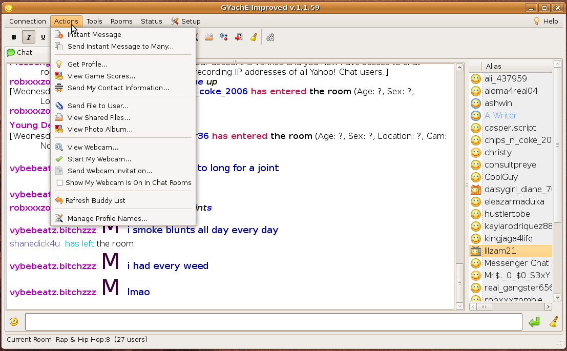 GYachI attracted me because it enabled me to do almost everything that any Yahoo user can do on a sluggish Windows machine or the too prudish Mac machines. However, since you run it on GNU/Linux systems, no one can send ‘malicious’ software and corrupt your system.