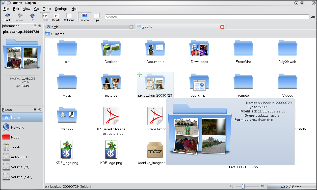The Dolphin file manager now shows a slideshow of the images that are inside when you hover over a folder when using the file ‘Preview’ mode. A feature to play (preview) media files in the ‘Information’ pane has also been added.