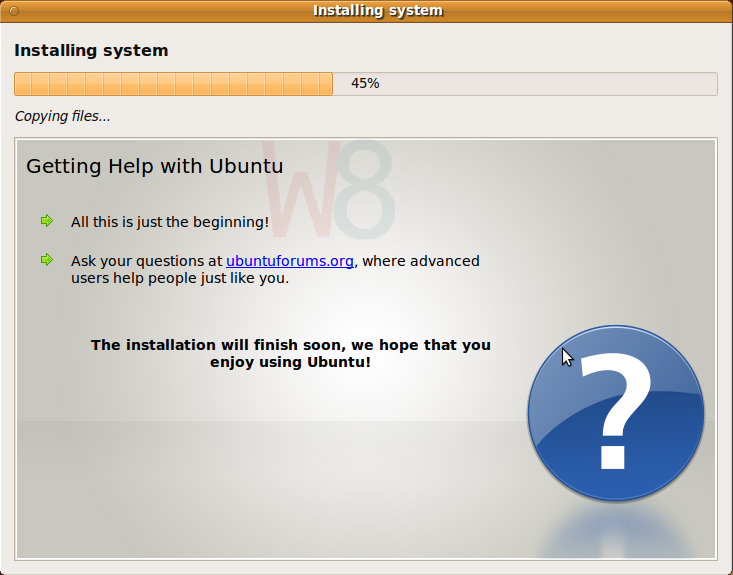 In Ubuntu, the Ubiquity installer seems to improve drastically, release by release. Apart from being more stable, it now has even more polish. A slideshow during the set-up phase (Figure 8) actually enlightens us about the practical features of the operating system rather than brag about how this particular OS is the best of the lot (as openSUSE does) or advertise other products by the company (as Mandriva does). Out at the Kubuntu stable, the installer is one H-U-G-E surprise, with such a completely redesigned minimalist yet pretty UI (Figure 9) that you’ll actually want to stare at it rather than do anything on it. I personally think this actually compares with the likes of the Windows 7 installer.