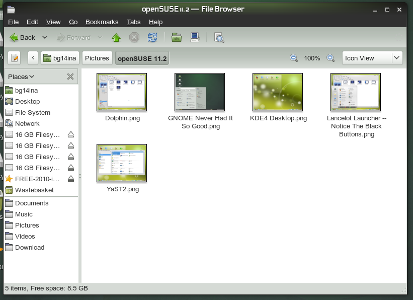 Does it even look like openSUSE has any competition here? Had they included the sub-pixel rendering patches for freetype, XFT and Cairo, openSUSE with its lime green KDE4 (Figure 4) and dark suede green GNOME (Figure 5 and Figure 12) would have scored a perfect 10 in the looks department. Even without them, nobody comes even close. This has the best KDE4 implementation around.
