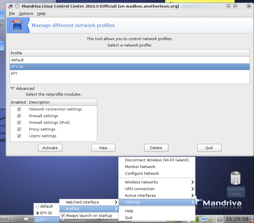 Get to networking and Mandriva comes up with one slick feature. Mandriva includes support for something called Network Profiles—refer to Figure 16. Let’s suppose you use a wired network at home, Wi-Fi with a corporate proxy at office, and a public profile with full firewall, DHCP and no network daemons in public places. With Network Profiles (accessible from MCC–>Network), you can create profiles of network settings, say one with static IP and no proxies for your home ADSL router; one with DHCP over Wi-Fi, and a corporate proxy for the office; one with maximum security for public places like airports, and then switch between them at will. Pretty nifty, because at home it saves the overhead of a DHCP request. At the office it makes sure all the proxies and DHCP stuff work homogeneously all over the system, and in public places it maintains some sanitised security. Cool eh?
