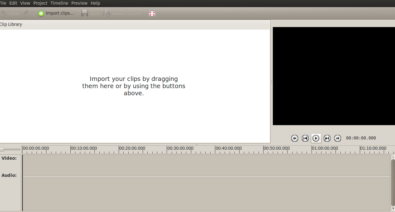 You can launch Pitivi from Applications –> Sound and Video –> Pitivi in Ubuntu (or run pitivi in a terminal window). You should see the welcome screen as shown in Figure 1.