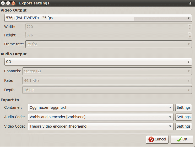 When it’s time to make a final package of your work, use the Render project toolbar button. Provide a name and output location for your video, and click OK. Click the Modify button to enter the Export settings dialogue box, as shown in Figure 6.