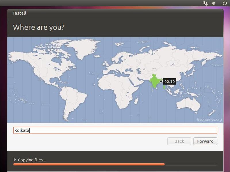 Once you select a destination partition, the installer begins copying files in the background (see Figure 3) while you fill in the time zone, user information, and other details. Pity no one thought this way earlier — it’s done in almost no time. In my case, it took almost 12 minutes on my three year-old Dell Optiplex 330 (Pentium dual-core 1.6 GHz, 2 GB DDR2 RAM, 160 GB HDD). Booting into the live environment took a mere 59 seconds — really amazing.