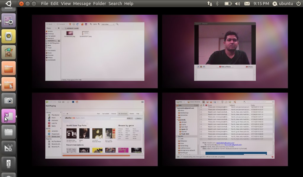 If you click the Ubuntu button at the top left corner of the screen, you’ll be presented with an iPad-like home screen, with high-resolution icons for your favourite destinations. Another great eye candy worth mentioning is the inclusion of the Workspaces option to switch between virtual desktops. You can access this feature by clicking on the purple Workspaces icon from the side-bar. Evolution also performs in a special mode that’s more suited for the small screen sizes of netbooks. Beneath it are all the good enhancements of the stable Ubuntu 10.10 desktop edition. The global app menu is another nifty feature added in this release.