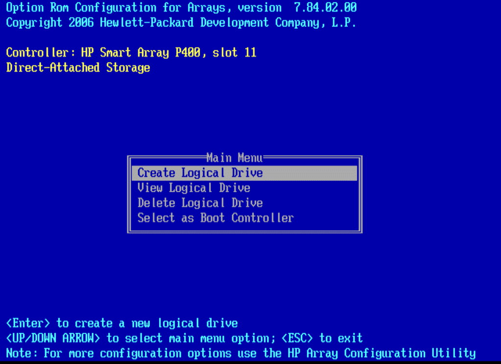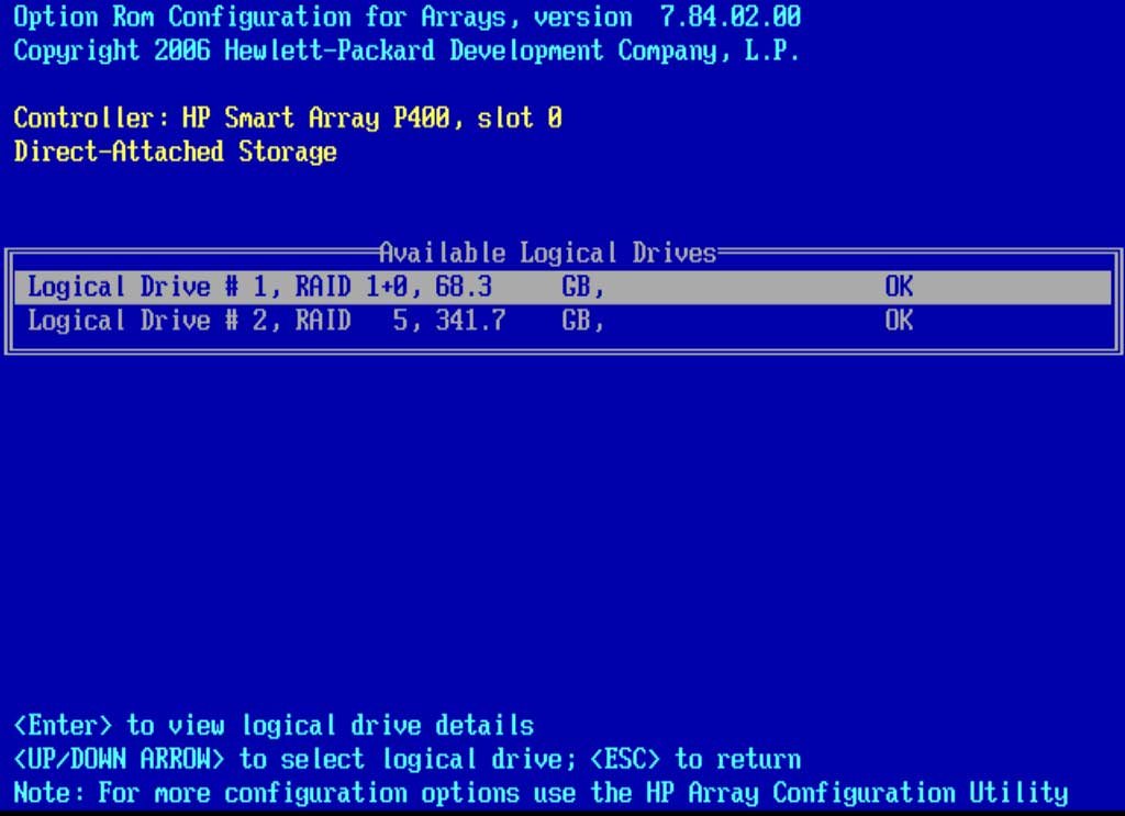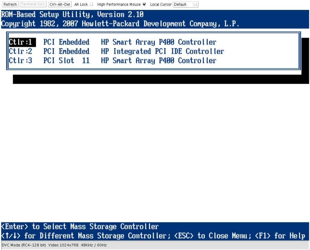 It is clear that the boot priority is as follows: first the PCI Embedded HP Smart Array P400 Controller (also known as Slot 0), then the PCI Embedded HP Integrated PCI IDE Controller, and finally the second RAID controller, in Slot 11.