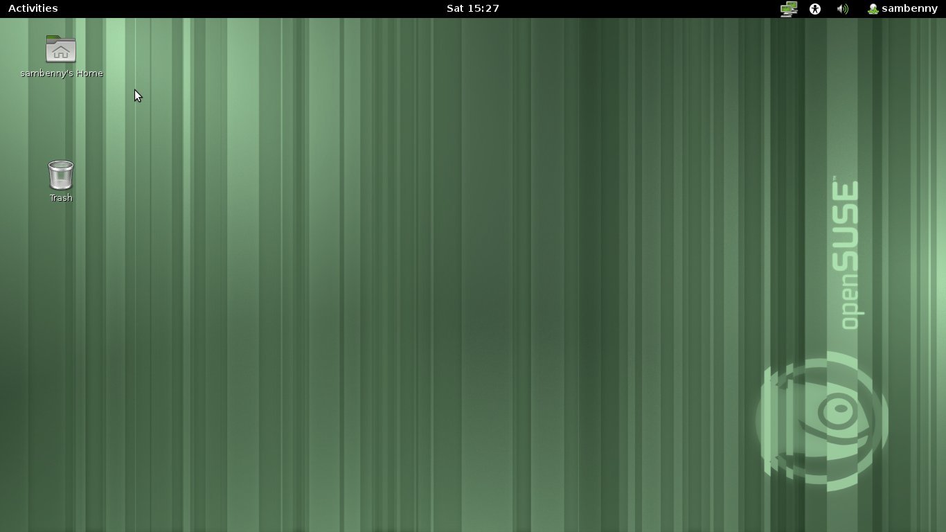 In the bottom right corner, you will get a gnome-settings-daemon icon that is used to change the screen resolution, which I believe is a feature of openSUSE. The app that is currently active has its icon placed adjacent to the Activities button.