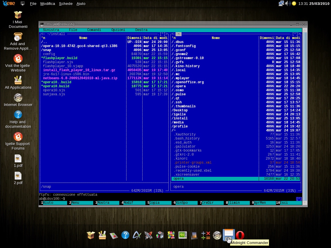 You can now run Midnight Commander directly, through LXTerminal, specifying the full path to the binary, /opt/mc/bin/mc. Or you can click on the icon with the floppy disk, titled Midnight Commander.