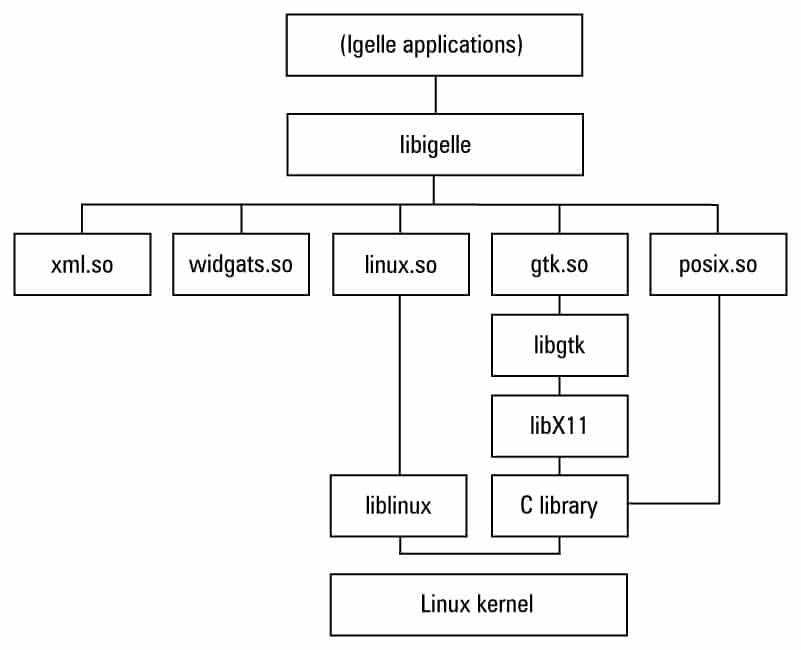 There was also an interior redesign of the system’s architecture. Now, if you decide to create a fully portable Igelle application or package, it will be tied to the special library libigelle. This library alone will later decide exactly what resources are needed for this application, and dynamically reroute the necessary requests to the required underlying libraries (see Figure 7).