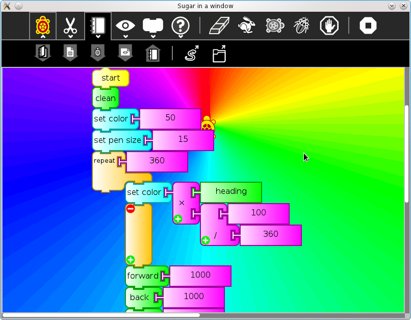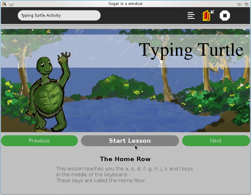 Typing Turtle is a useful way to improve your touch typing. Memorize makes memorisation painless and fun. Implode is a nice game for very young children; the objective is to get rid of groups of three or more blocks of the same colour. Pippy is a Python IDE with a number of examples, including sound and graphics, to help you learn programming in the Sugar environment.