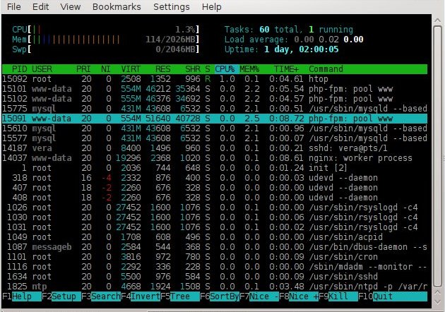 rsync will help us later to fetch the WordPress files from the current server, while htop is a personal choice over the top command — just looks a bit better :-)
