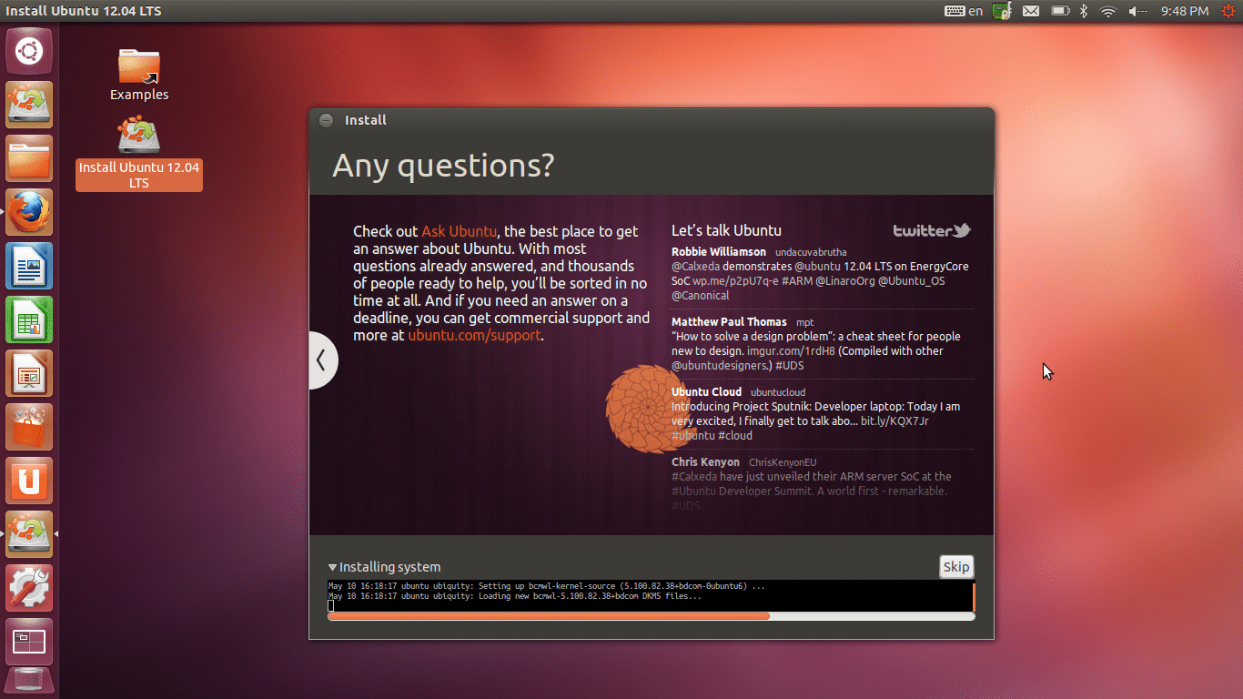 A real nice addition is the installer’s concluding slide. While it introduces the user to the Ask Ubuntu question bank, it additionally also pulls in recent updates from Twitter land that has anything to do with Ubuntu and Canonical. Whoever thinks marketing and open source can’t comfortably sit together is plain old-fashioned — you can’t sell if you refuse to market, stand out from the rest, and do your PR!