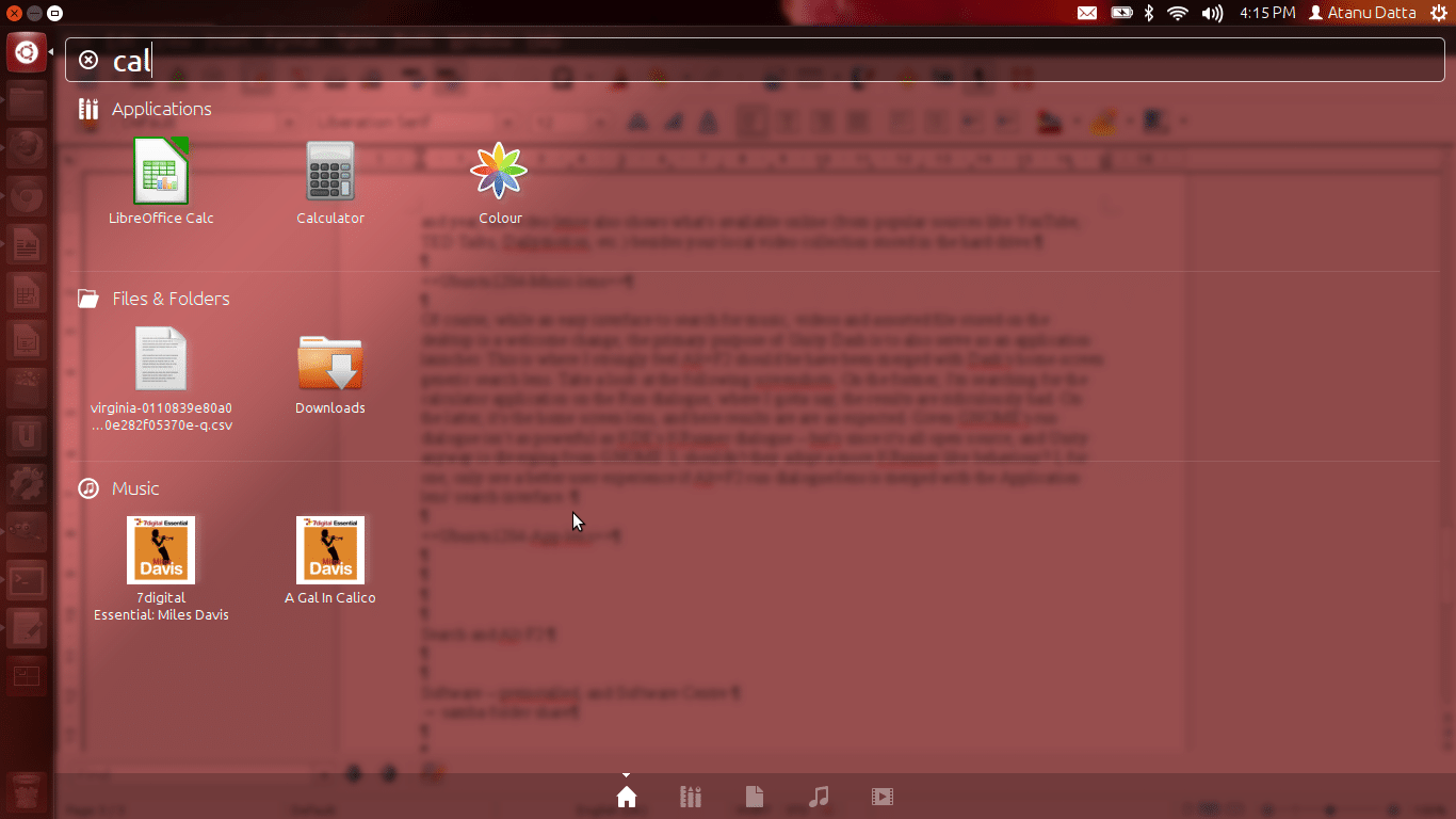 While an easy interface to search for music, videos and assorted files stored on the desktop is a welcome change, the primary purpose of Unity Dash is to also serve as an application launcher. This is where I strongly feel Alt+F2 should be merged with Dash’s home screen generic search lens.
