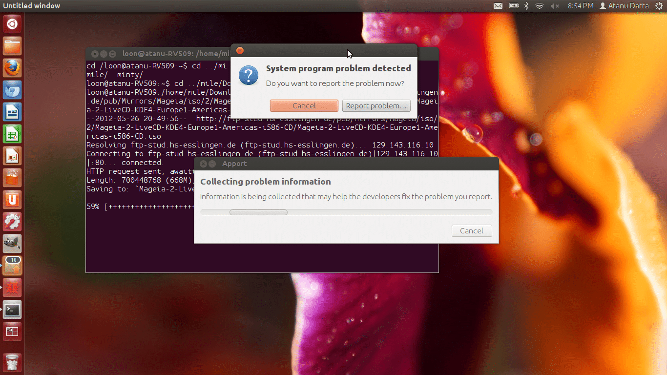 Of another note is the screenshot below. You get these random “Report Problem” dialogues sometimes — that more often than not fails to tell you which application or service crashed or caused the error. And many a times when you click Report Problem it asks you random questions only to advice you in the end that you should rather use the bug tracker to submit your issue than this software now that Ubuntu 12.04 has released. WTF? Seriously, make up your mind, and fix this bug submission tool!