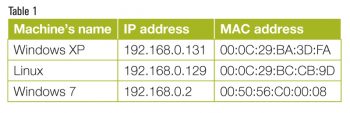 In order to demonstrate ARP spoofing we need three machines—a gateway, an attacker and a victim. All experiments are performed in VMware 8.0, taking a Windows 7 system as the gateway, a Windows XP system as the victim and a Linux (Backtrack) system as the attacking machine.