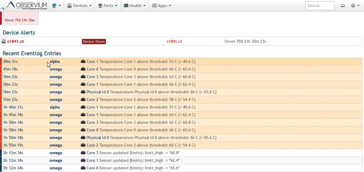 Observium is a network monitoring platform that supports a wide range of operating systems such as Windows, Cisco, Juniper, Dell, HP and Linux. It is open source and free, and based on PHP/MySQL. It collects data from devices by using the Simple Network Management Protocol (SNMP) and displays it through graphical presentation via a Web interface. It makes use of the RRDtool package, and requires no manual interpretation or very little of it. It can be integrated with some other open source tools for network monitoring such as Cacti or Nagios. Observium uses the GeSHi and jpgraph software packages to extend its features.
