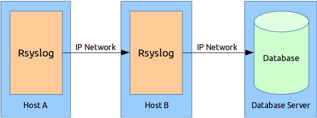 This is the simplest configuration in which the Rsyslog server stores the log messages in the same machine, either in a disk file or database see Figure 1.