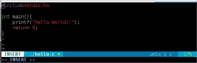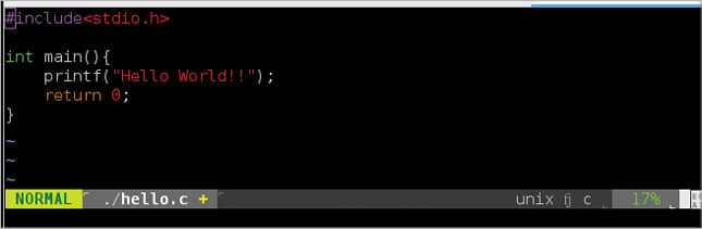 By default, Vim has three modes (see Figures 2 to 4). Sometimes it is very difficult to identify which mode you are in. Vim Airline provides a colourful GUI. This not only helps you to identify the mode, but also to change the colour in different modes.