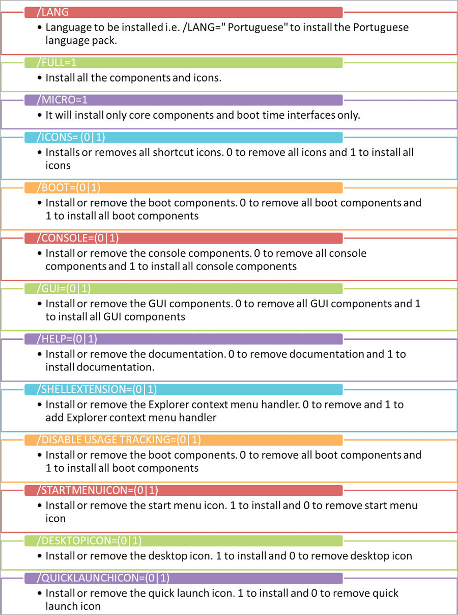 ultradefrag-6.0.0.bin.i386.exe /S /STARTMENUICON=1 /LANG=” Portuguese” /FULL=1 /ICONS=0