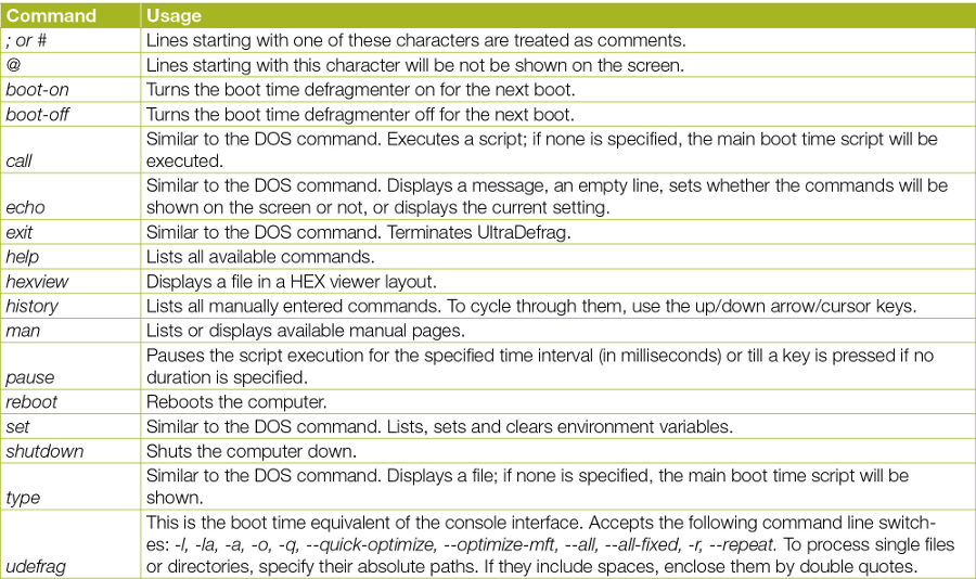 The command line switches supported in UltraDefrag are shown in Figure 2.