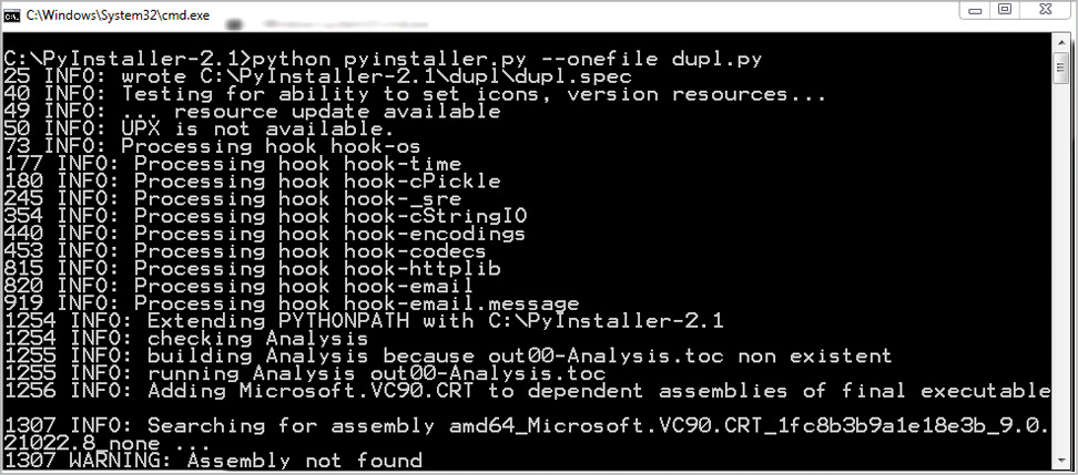 Let us save the complete code as dupl.py and make it a Windows executable (exe) file using the Pyinstaller module. You can also download a readymade exe file from http://l4wisdom.com/dupl_go.php. Run the command as shown in Figure 2. After running it successfully, you can find the dupl.exe in folder C:\PyInstaller-2.1\dupl\dist, as shown in Figure 3. You can put the dupl.exe file in the Windows folder, but if you place this in a different folder, you will have to set the path to that folder. Let us run the program with the following command: