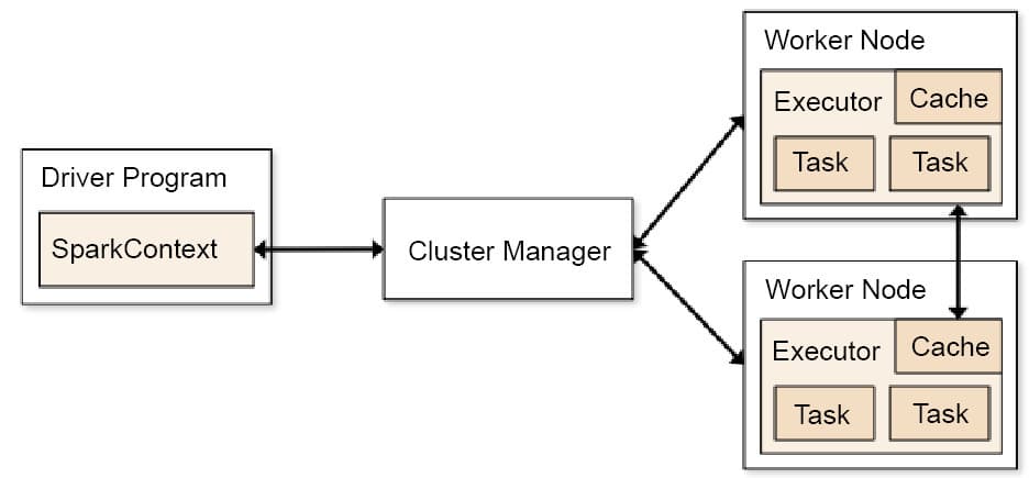 Spark uses a master/worker architecture. There is a driver called the Spark Context object, which interacts with a single coordinator called the master that manages workers in which executors run.