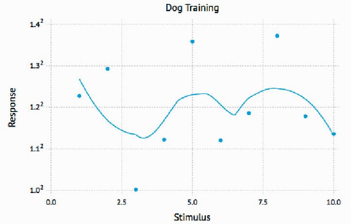 Gadfly.plot(x=1:10, y=2.^rand(10), Scale.y_sqrt, Geom.point, Geom.smooth, Guide.xlabel(“Stimulus”), Guide.ylabel(“Response”), Guide.title(“Dog Training”))