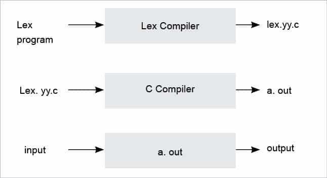 The C file generated — lex.yy.c — can be compiled using a gcc compiler: