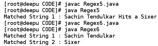 Now, what if you want the matched string displayed instead of the index at which a match is obtained. Well, then you have to use the method group( ) provided by the class Matcher. Consider the program Regex5.java shown below: