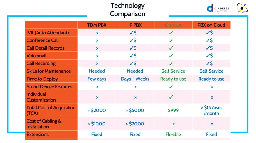 The deployment at Diabetes Singapore was the first end-to-end implementation by Crux Labs in Singapore. Hence there were some specific issues since the network setup was new. All of these were debugged—the setup was complete in two days and went live across all locations. New installations with the chosen SIP provider now take just 15 minutes!