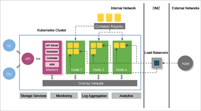 At a very high level, Kubernetes provides a set of dynamically scalable hosts for running workloads using containers, and it uses a set of management hosts called masters that provide an API for managing the entire container infrastructure. This server acts as a gateway and brain for the cluster. Task of the master server is to check the health of the other servers, deciding how to split and assign work and orchestrate communication between other components. The master server acts as the key point of contact with the cluster and is responsible for most of the centralised logic Kubernetes provides.