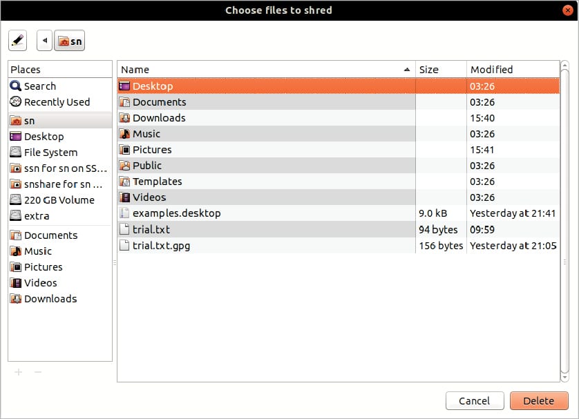 The above command will ask for a passphrase and then create a new file called trial.txt.gpg, after which the original file can be deleted using shred.