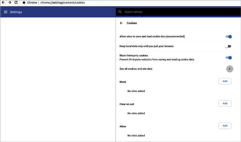 You can also go to the Cookies blocking options directly by clicking on the Content blocking option in the Settings menu.