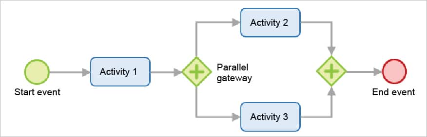 - If there are activities that happen in parallel, use symmetric gates to map out the beginning and the end of the parallel phases of the process.