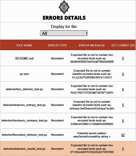 talisman –scanWithHTML creates pretty and easy-to-understand reports, which help the team to understand the errors caught by Talisman for the specific repository. Figures 1, 2, 3 and 4 show some sample reports that you can archive in your CI/CD environment.