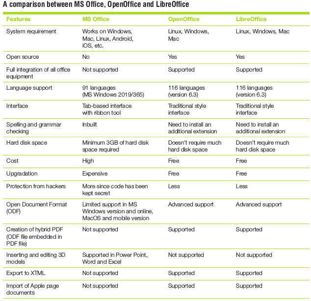 OpenOffice offers a language-independent application programming interface (API) which allows users to program the software in different programming languages (e.g., C++, Java, Python, the command line interface (CLI), OpenOffice Basic, JavaScript, object linking and embedding (OLE), etc). The popularity of the standardised Open Document format for office applications is growing. Corporate users often demand the integration of office productivity with existing workflows and applications. They also often require additional functionality and the special customisations of existing features. That is one of the main goals of OpenOffice. Small businesses don’t have the budgets for enterprise applications. So, in such cases, open source can provide free options. These businesses can replace MS Office in a full-blown ERP system.