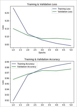 Train on 50000 samples, validate on 10000 samples Epoch 1/5 50000/50000 [==================================] - 9s 178us/step - loss: 0.2801 - acc: 0.9191 - val_loss: 0.1498 - val_acc: 0.9578 Epoch 2/5 50000/50000 [=================================] - 5s 96us/step - loss: 0.1170 - acc: 0.9656 - val_loss: 0.1070 - val_acc: 0.9675 Epoch 3/5 50000/50000 [==================================] - 5s 100us/step - loss: 0.0773 - acc: 0.9770 - val_loss: 0.0858 - val_acc: 0.9739 Epoch 4/5 50000/50000 [=================================] - 5s 99us/step - loss: 0.0555 - acc: 0.9828 - val_loss: 0.0879 - val_acc: 0.9734 Epoch 5/5 50000/50000 [==================================] - 5s 94us/step - loss: 0.0414 - acc: 0.9874 - val_loss: 0.0812 - val_acc: 0.9767
