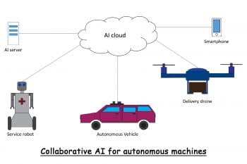 The use of AI models helps develop an effective AI system, with collaboration not only between humans, but also with machines. In this model, various machines are connected with each other using a cloud based network, and the actual data is stored on the cloud and securely exchanged between nodes. With this model, the connected AI machines can communicate with each other and develop the learning process. Humans can also develop the algorithms stored on the cloud network by following the collaborative model of software development.