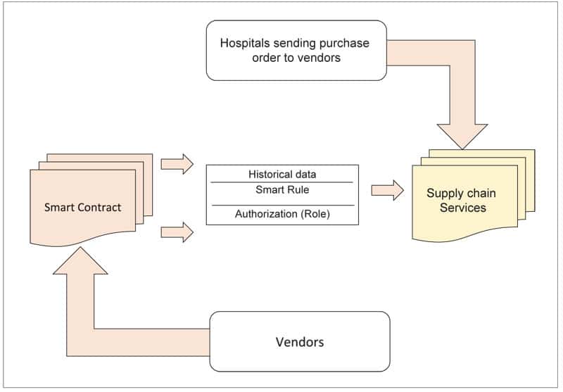 Implementing a medical supply chain solution involves handling people (governance), processes (activities and information flow) and technology (using blockchain smart contracts to accelerate the workflow) using blockchain platforms. Typically, this can be designed with a permissioned, private blockchain platform to avoid the confusion between suppliers and customers when processing orders.