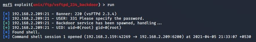 Go back to your Kali Linux machine and use the command run to run the exploit. A session will be opened.
