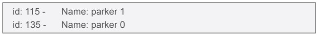 id: 115 - Name: parker 1 id: 135 - Name: parker 0