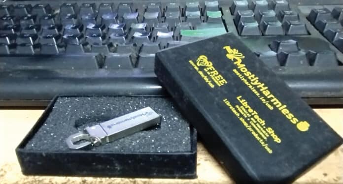 To learn more, meet Abhas Abhinav. He is a long-time community member of Free and Open Source Software (FOSS) networks in India, particularly (but not restricted to) Bengaluru. He tells the story of this disk: “It started as an experiment to offer a convenient and always accessible tool to showcase and use a free OS anywhere. I have made multiple variants of it over the past two years. One was for the LibrePlanet conference in Boston, where we gave it out to some of the participants gratis — or at a price of their choosing.”