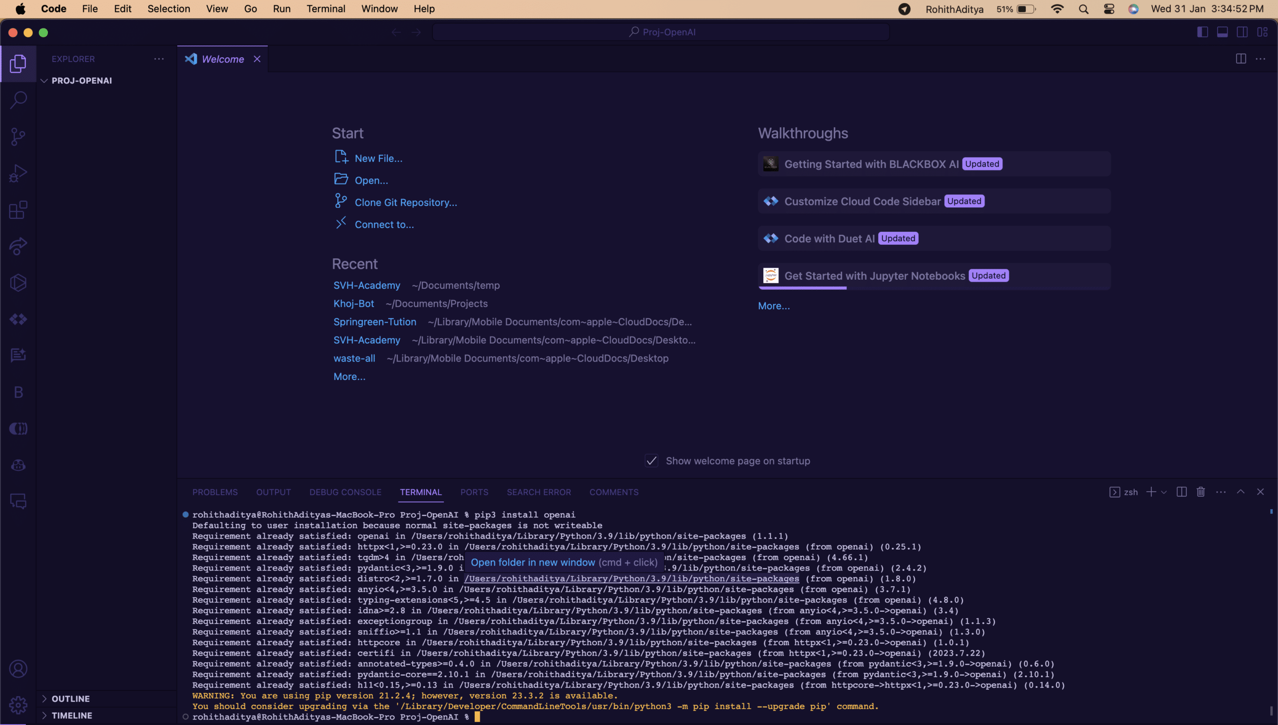 Install the required modules: Open a terminal or command prompt. Type pip3 install openai or (as per your system) pip install openai to install the OpenAI Python library. You should get a confirmation message that the module has been successfully installed. Once this is done, you can type the command once again to verify if you have installed Python or not. You will get a message similar to the screenshot given in Figure 2. This means the OpenAI Python library has been installed on your system. This library provides a convenient way to interact with OpenAI’s language models, including GPT-3. It simplifies the process of sending requests to the OpenAI API and handling responses.