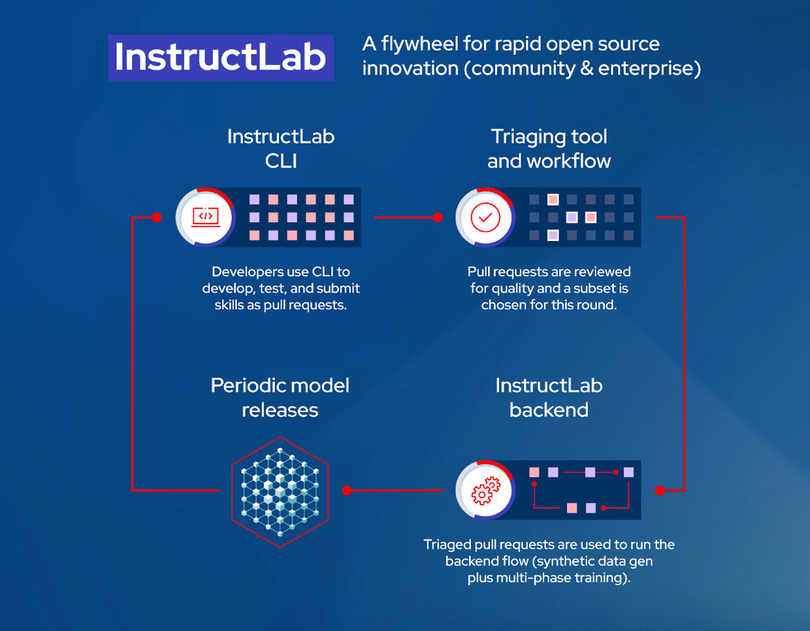 The training pipeline for fine-tuning Large Language Models typically demands data science expertise and substantial resources, posing challenges in terms of both cost and accessibility. Red Hat, in collaboration with IBM and the open-source community, aims to democratize AI development by introducing familiar open-source contributor workflows and permissive licensing to foster collaboration and innovation.